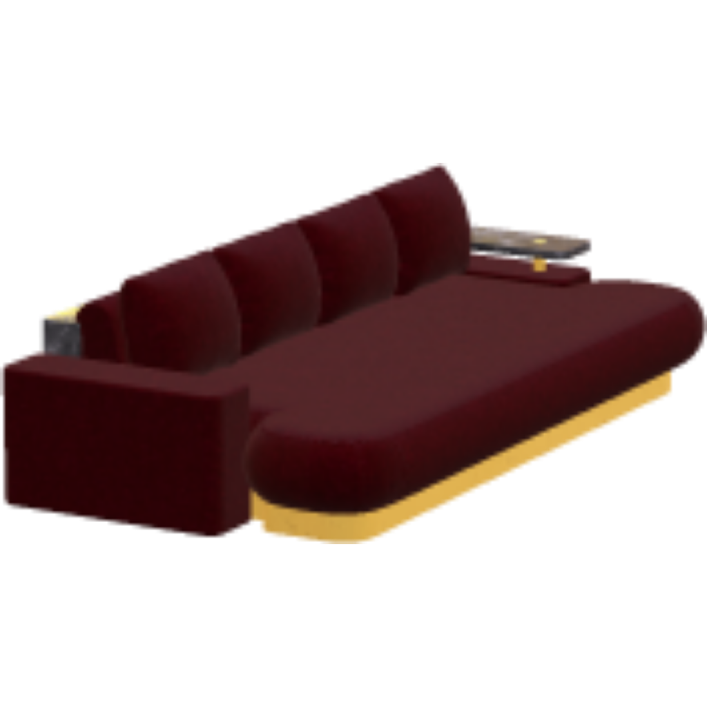 Elegant Plinth Base: The Dreamcloud sits on a solid plinth base that can be customised in your choice of brass, copper, black metal, or laminate finishes. This base provides a sturdy foundation while adding a touch of gleaming luxury at the bottom edge of the daybed. Whether you prefer the warmth of metals like brass and copper or a sleek black or modern laminate, the plinth base option lets you coordinate the daybed with other theatre room fixtures for a cohesive look.
